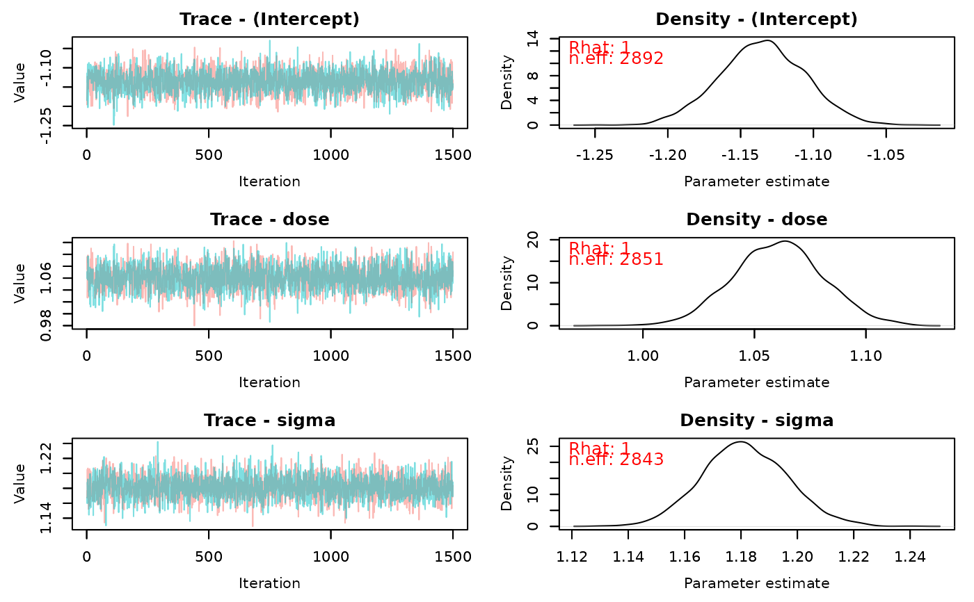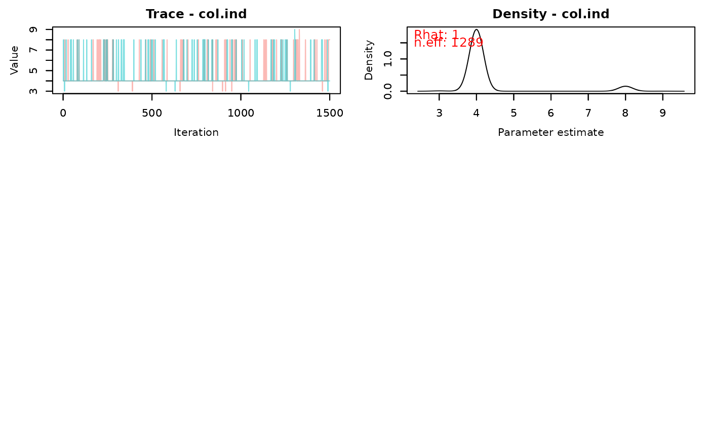 traceplot(object, iter = 5000, Rhat = TRUE, n.eff = TRUE, pdf = FALSE, ...)Arguments